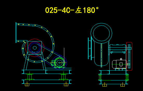 上圖為右旋180°的025-4C風機,人站在電機端正視風機,風機葉輪的出風方向為順時針。